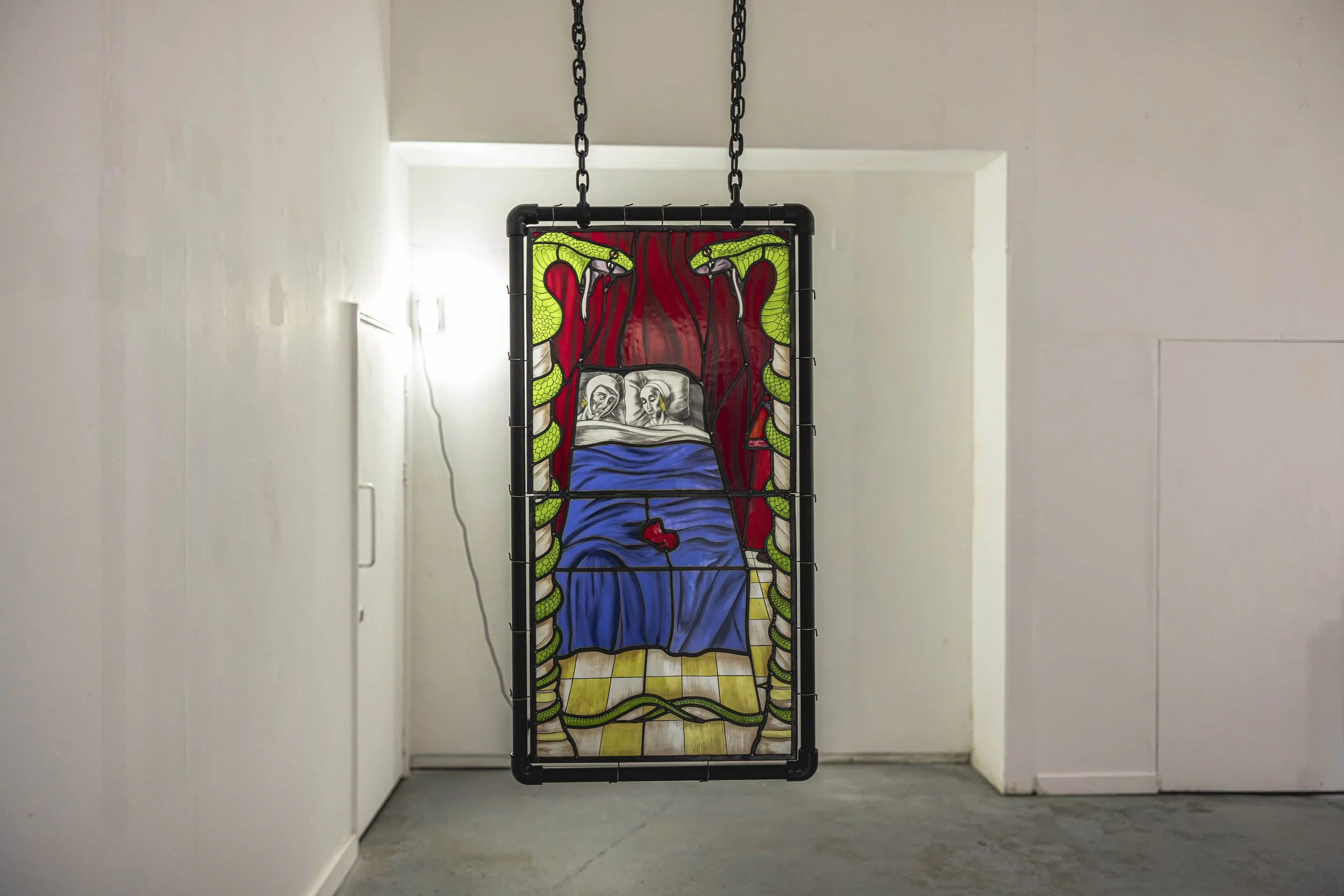 For the exhibition, I created an illuminated stained glass sculpture titled ‘After Hieronymus Bosch’.